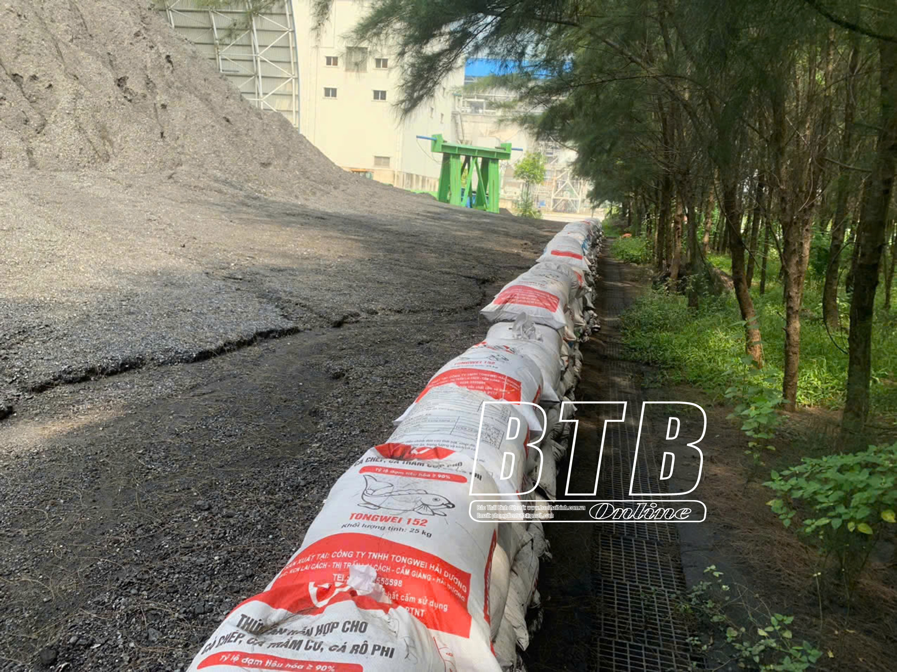 Công ty Nhiệt điện Thái Bình thực hiện đắp con chạch chống tràn và trôi than tại kho than.