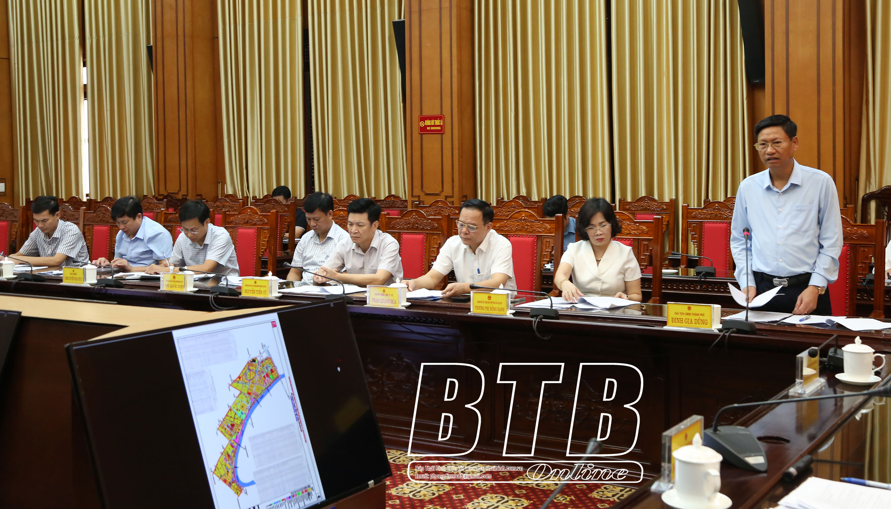 Lãnh đạo thành phố Thái Bình báo cáo tiến độ triển khai các dự án trọng điểm trên địa bàn thành phố.