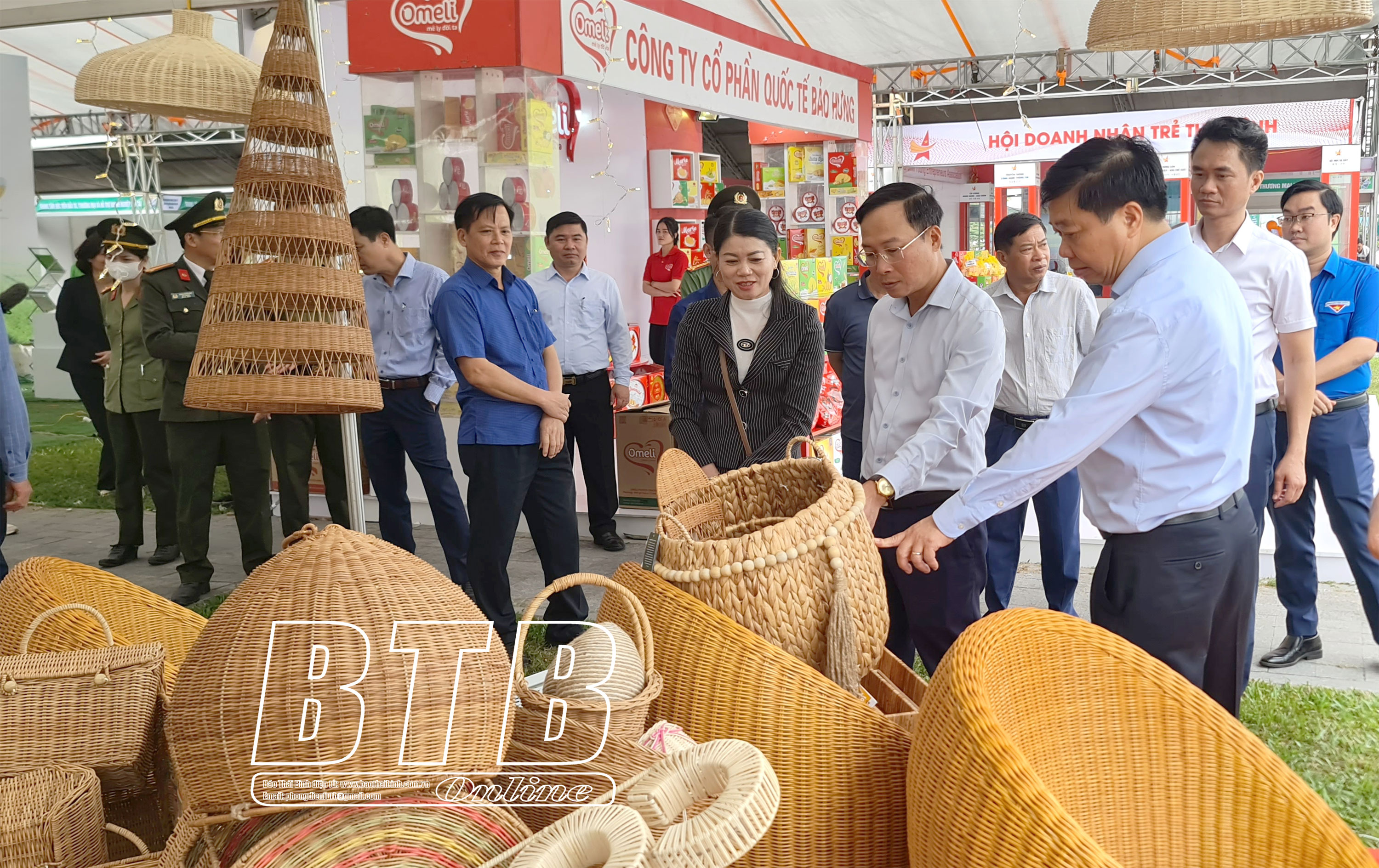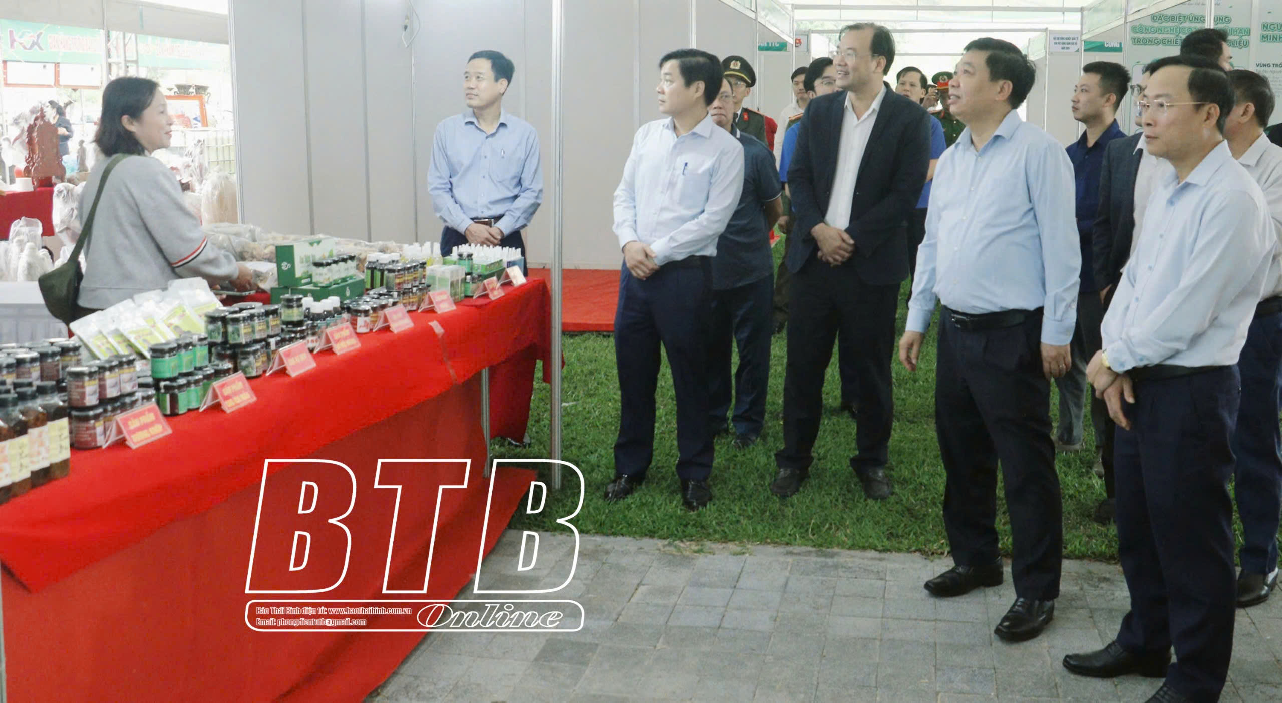 Đồng chí Phó Chủ tịch thường trực UBND tỉnh thăm gian hàng trưng bày sản phẩm OCOP của huyện Kiến Xương tại hội chợ.