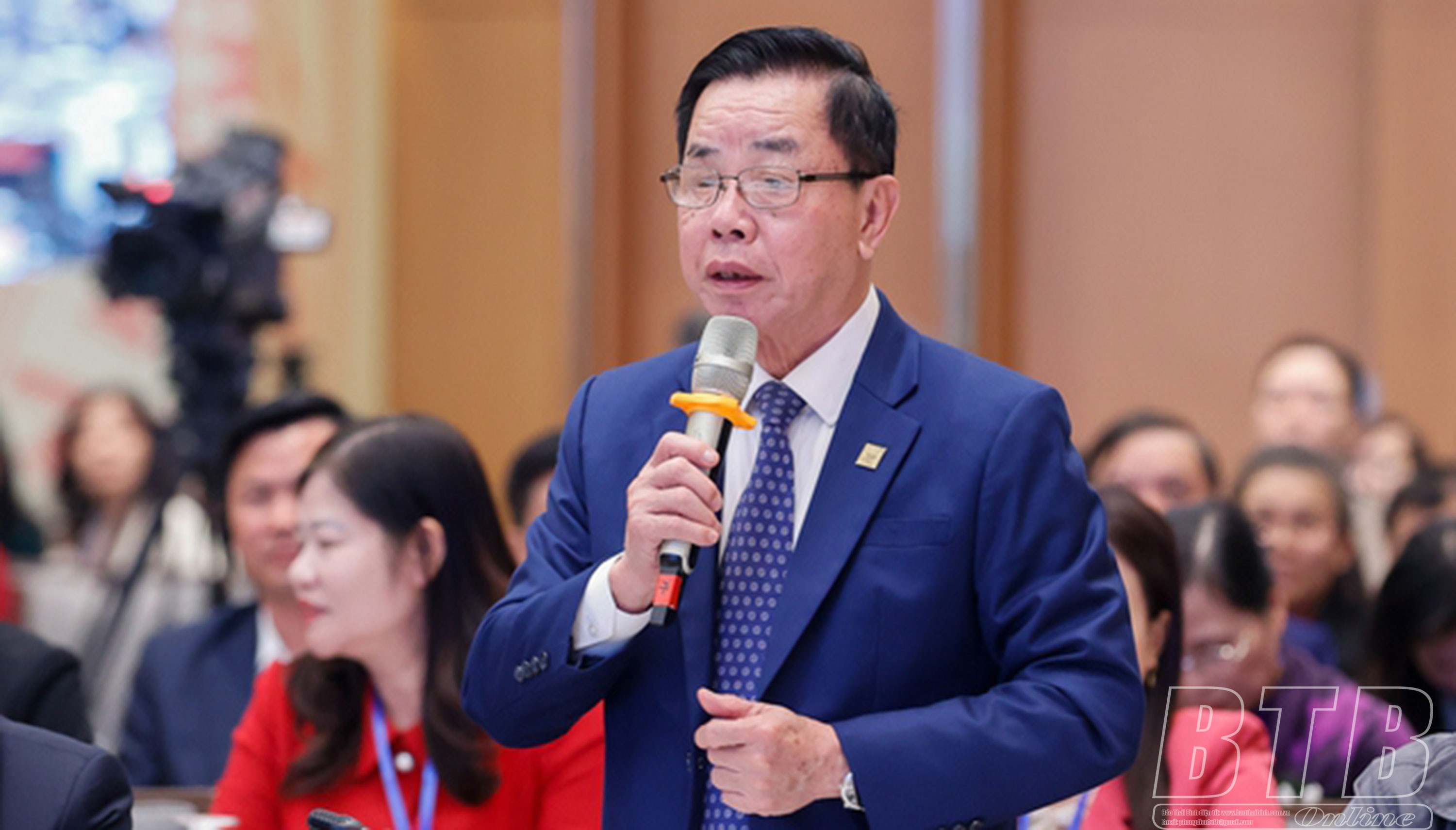 Ông Trần Mạnh Báo, Chủ tịch Hội đồng quản trị, Tổng giám đốc Công ty Cổ phần Tập đoàn ThaiBinh Seed đã đặt câu hỏi tới Thủ tướng và lãnh đạo các bộ, ngành Trung ương về cơ chế, chính sách để ngành nông nghiệp phát triển bền vững và khuyến khích doanh nghiệp đầu tư vào nông nghiệp; giải pháp để tăng cường liên kết giữa doanh nghiệp và nông dân giúp nâng cao hiệu quả sản xuất; trí thức hóa nông dân.