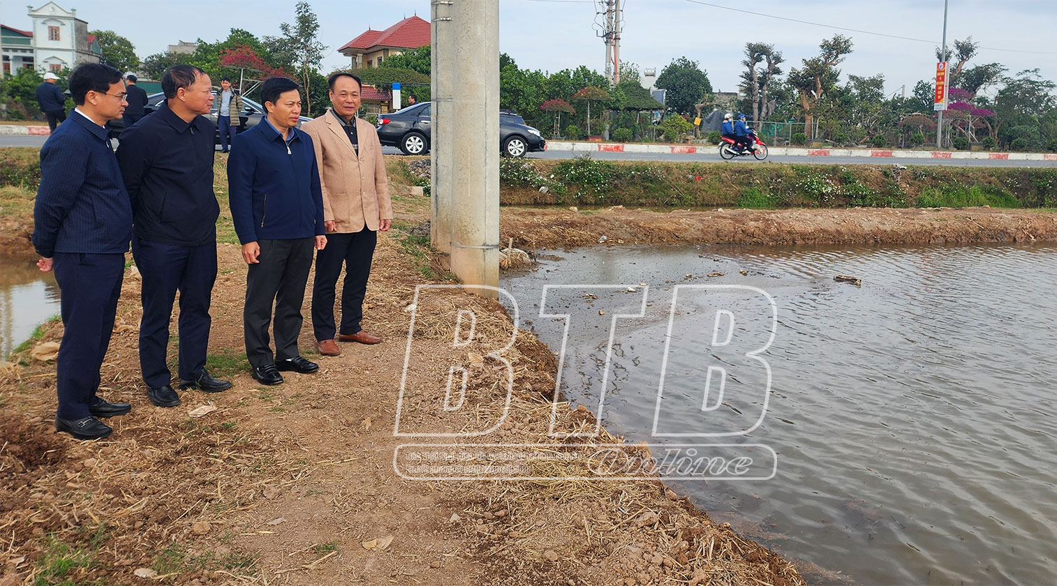Đồng chí Lại Văn Hoàn, Tỉnh ủy viên, Phó Chủ tịch UBND tỉnh kiểm tra công tác lấy nước đổ ải phục vụ gieo cấy lúa xuân tại xã Vũ Đông, thành phố Thái Bình.