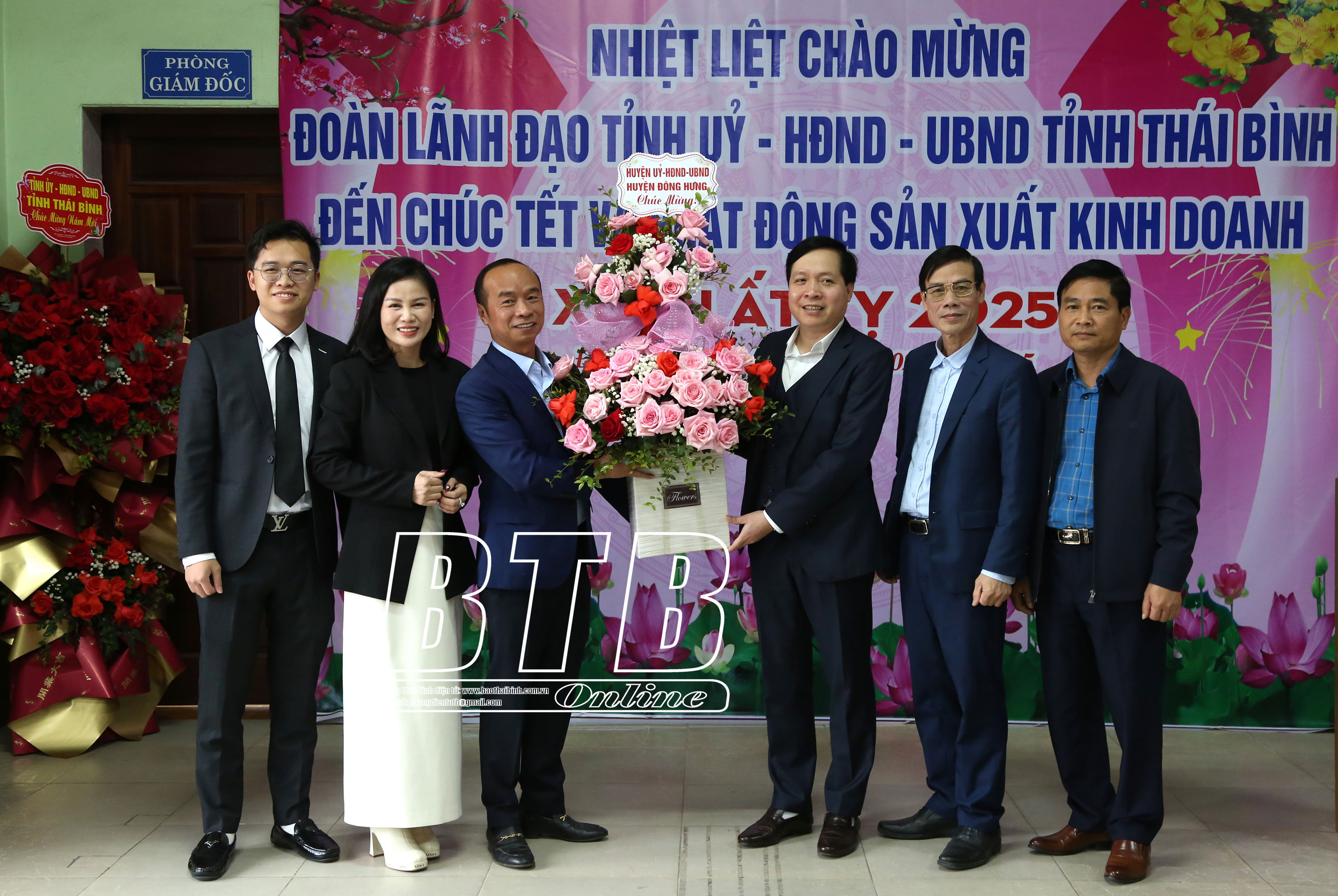 Chiều ngày 5/2, đồng chí Nguyễn Tiến Thành, Phó Bí thư thường trực Tỉnh ủy, Chủ tịch HĐND tỉnh tới thăm, động viên Công ty TNHH Sợi dệt Hương Sen comfort, Công ty TNHH DragonTextiles 2 (Quỳnh Phụ) và Công ty TNHH Hoa Việt (Đông Hưng) nhân dịp đầu xuân Ất Tỵ 2025. Cùng đi có các đồng chí Ủy viên Ban Thường vụ Tỉnh ủy; lãnh đạo HĐND, UBND, Đoàn đại biểu Quốc hội tỉnh, một số sở, ngành của tỉnh và huyện Quỳnh Phụ, Đông Hưng.
