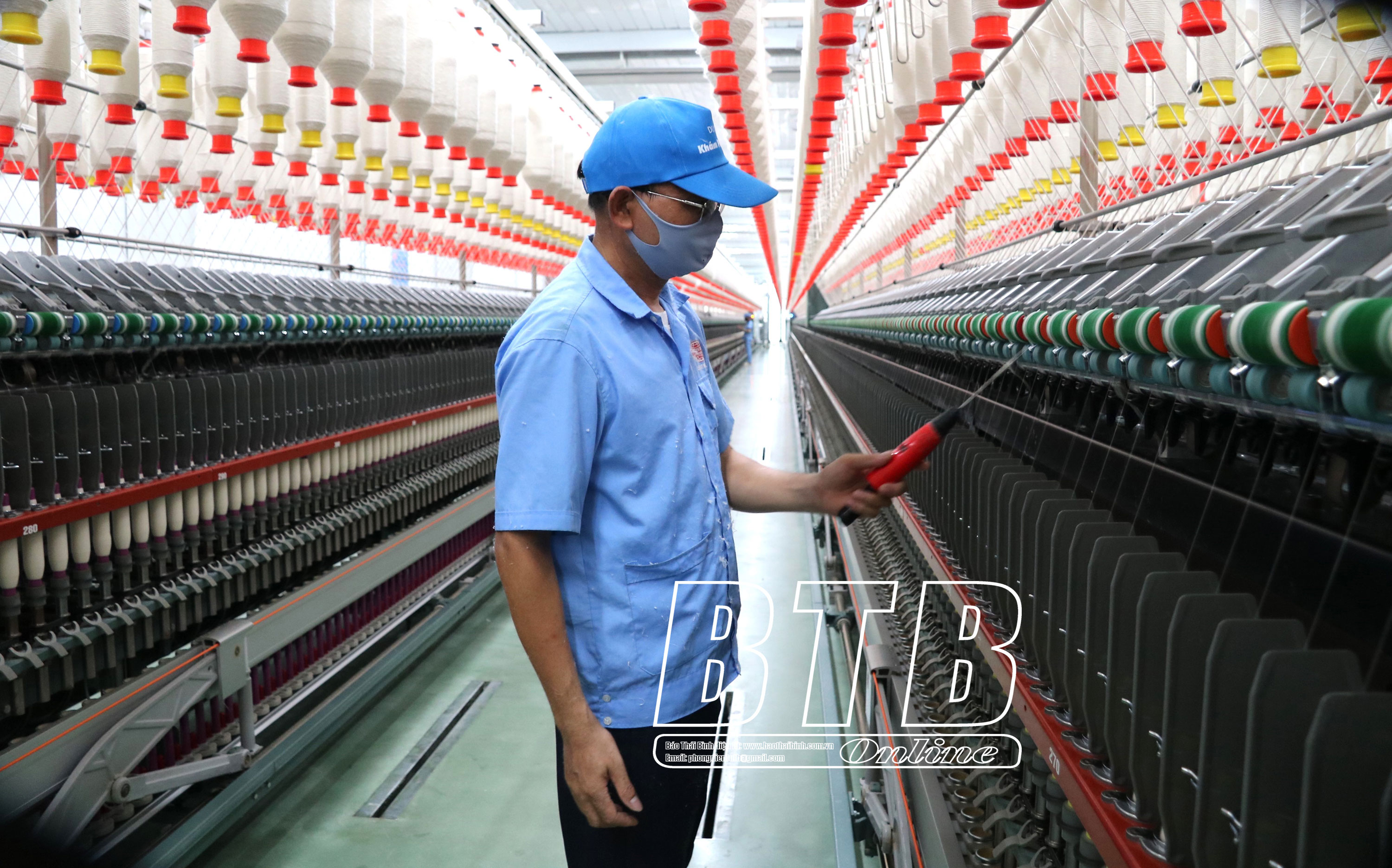 Công nhân Công ty Sợi dệt Hương Sen Comfor (Quỳnh Phụ) tích cực sản xuất ngay sau kỳ nghỉ tết.
