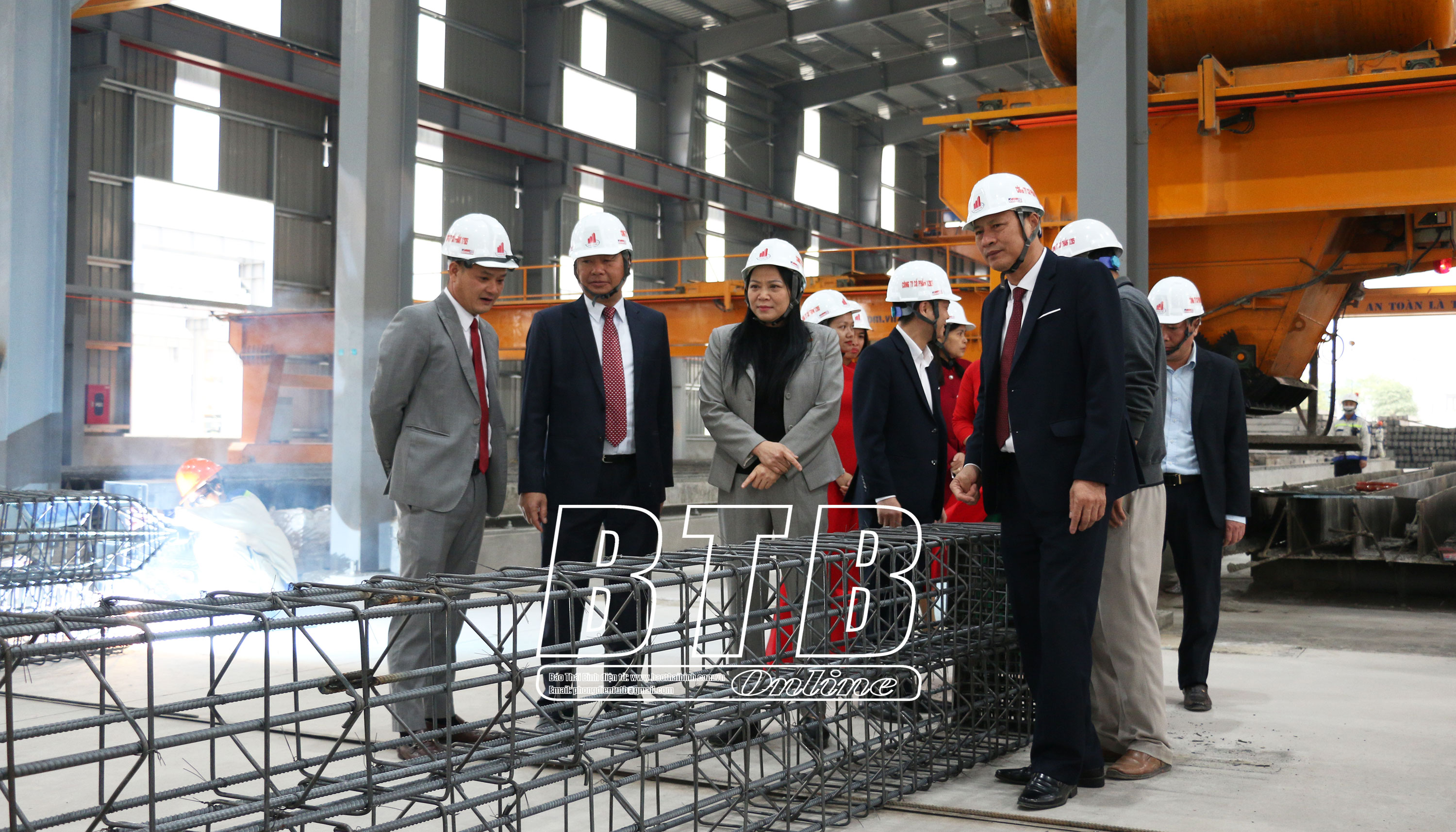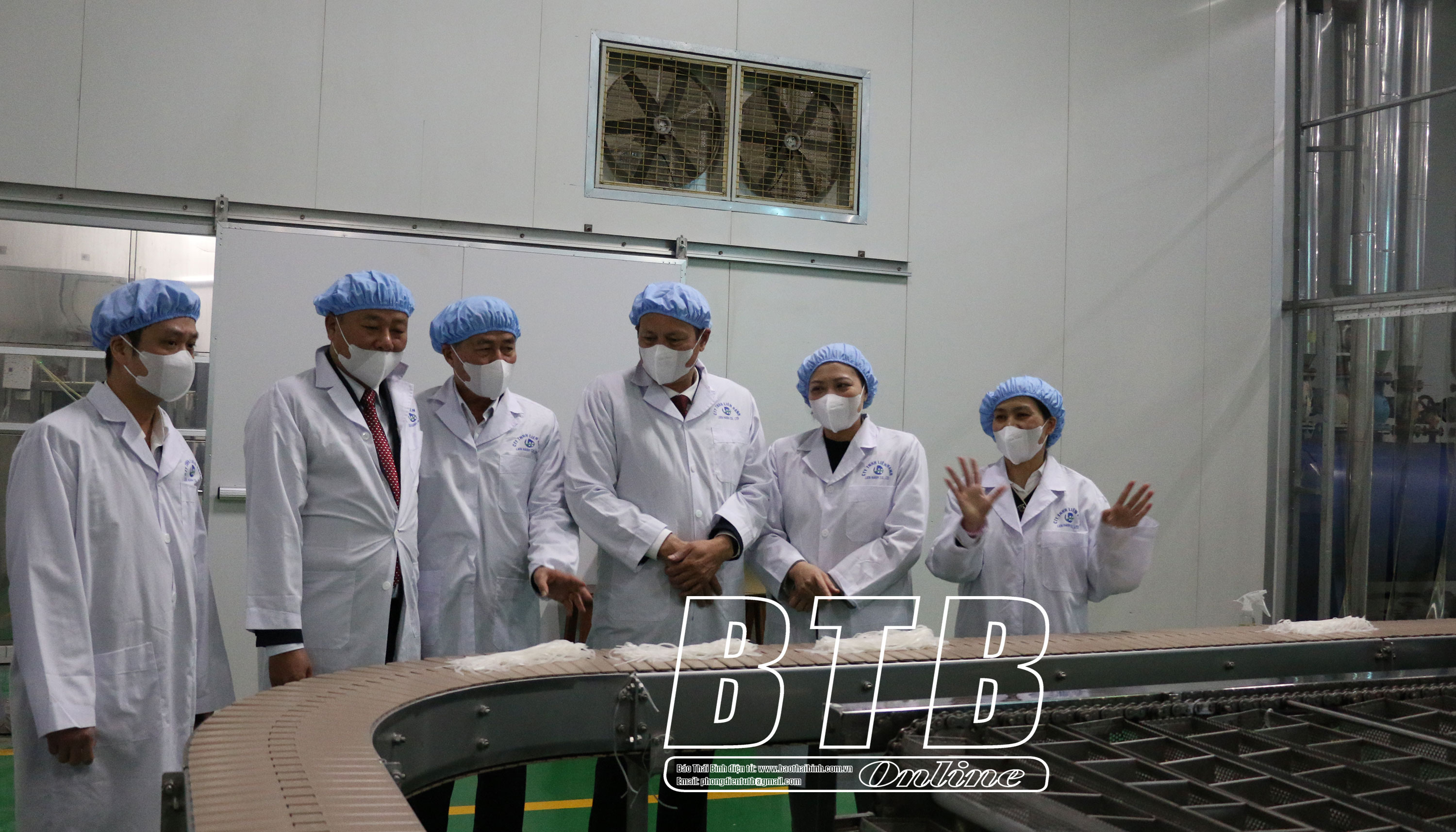 Lãnh đạo huyện Vũ Thư tham quan dây chuyền sản xuất của Công ty TNHH Liên Hạnh (cụm công nghiệp thị trấn Vũ Thư).
