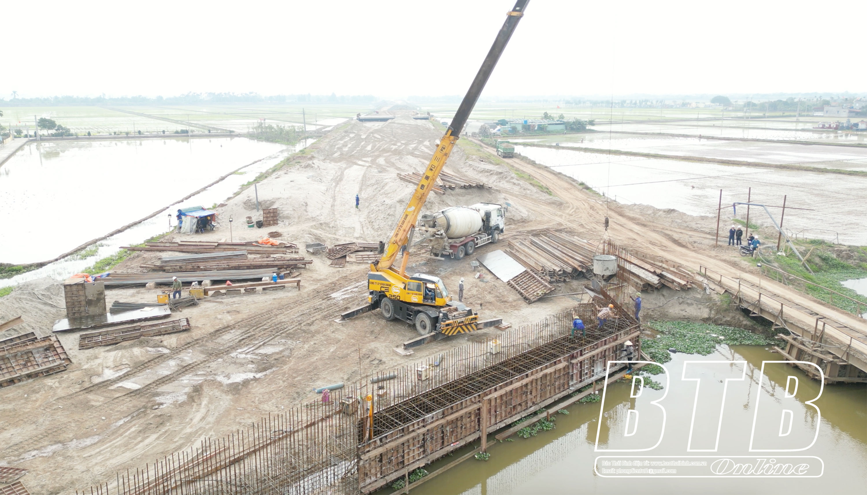 Có mặt tại công trường thi công tuyến số 3 của dự án, chúng tôi cảm nhận rõ không khí, khẩn trương của hàng trăm kỹ sư, công nhân. Trong 4 tuyến của dự án, tuyến số 3 có chiều dài lớn nhất với 13,07km chạy theo trục phía Nam Khu kinh tế Thái Bình, đoạn từ đường ven biển đến quốc lộ 37B qua địa phận 2 huyện Kiến Xương và Tiền Hải.
