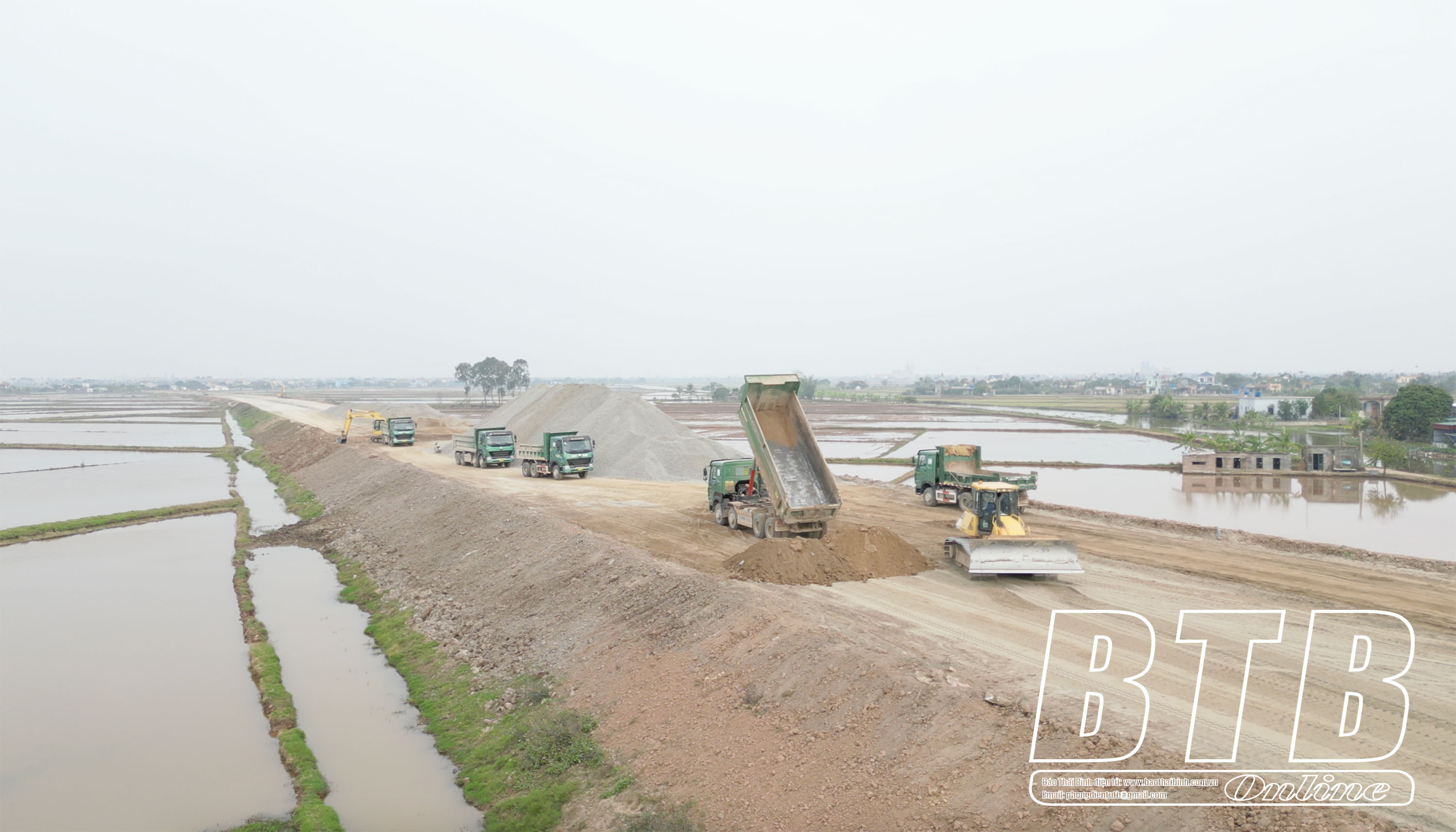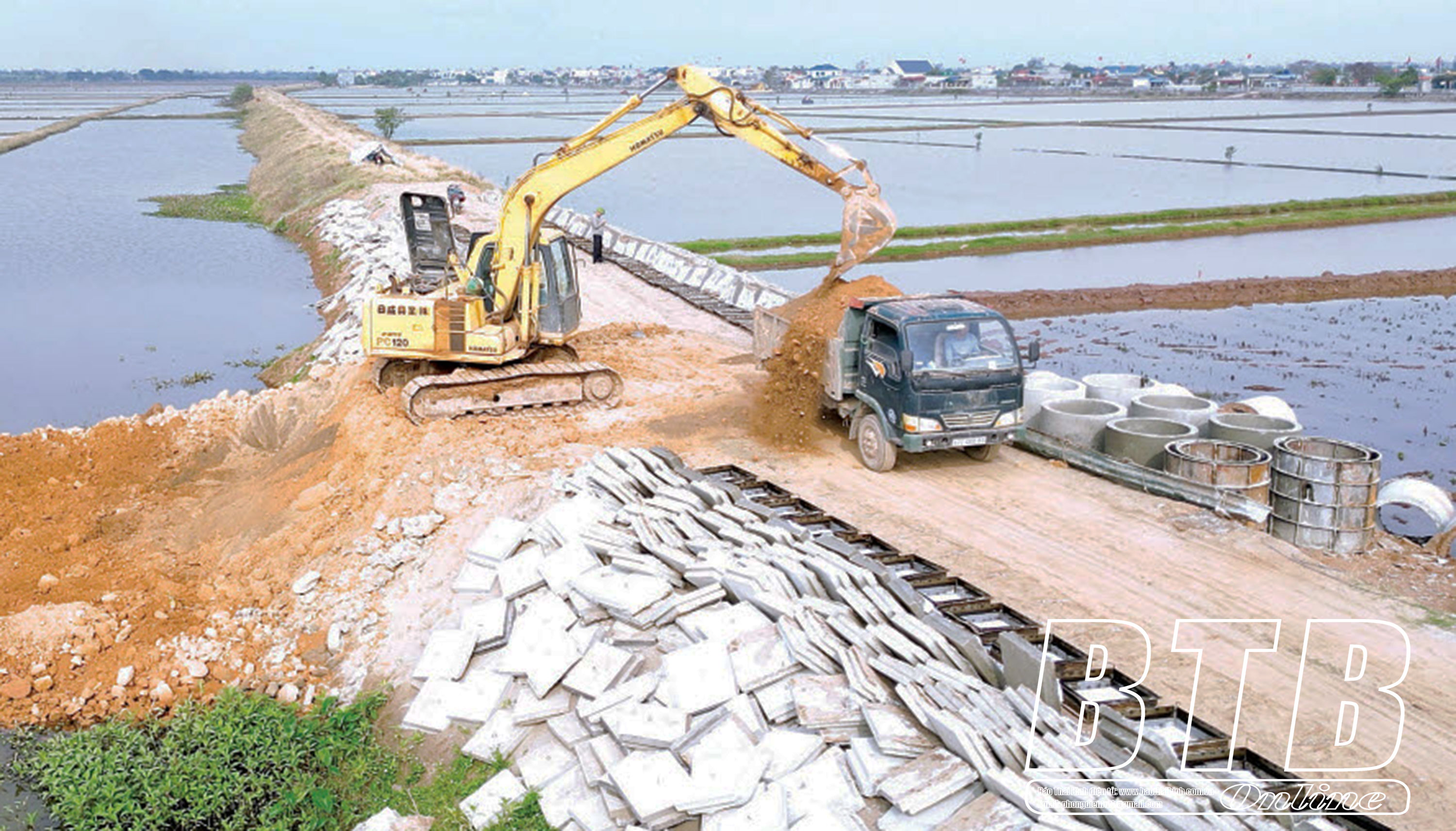 Thi công dự án đê Bình Thanh - Hồng Tiến.