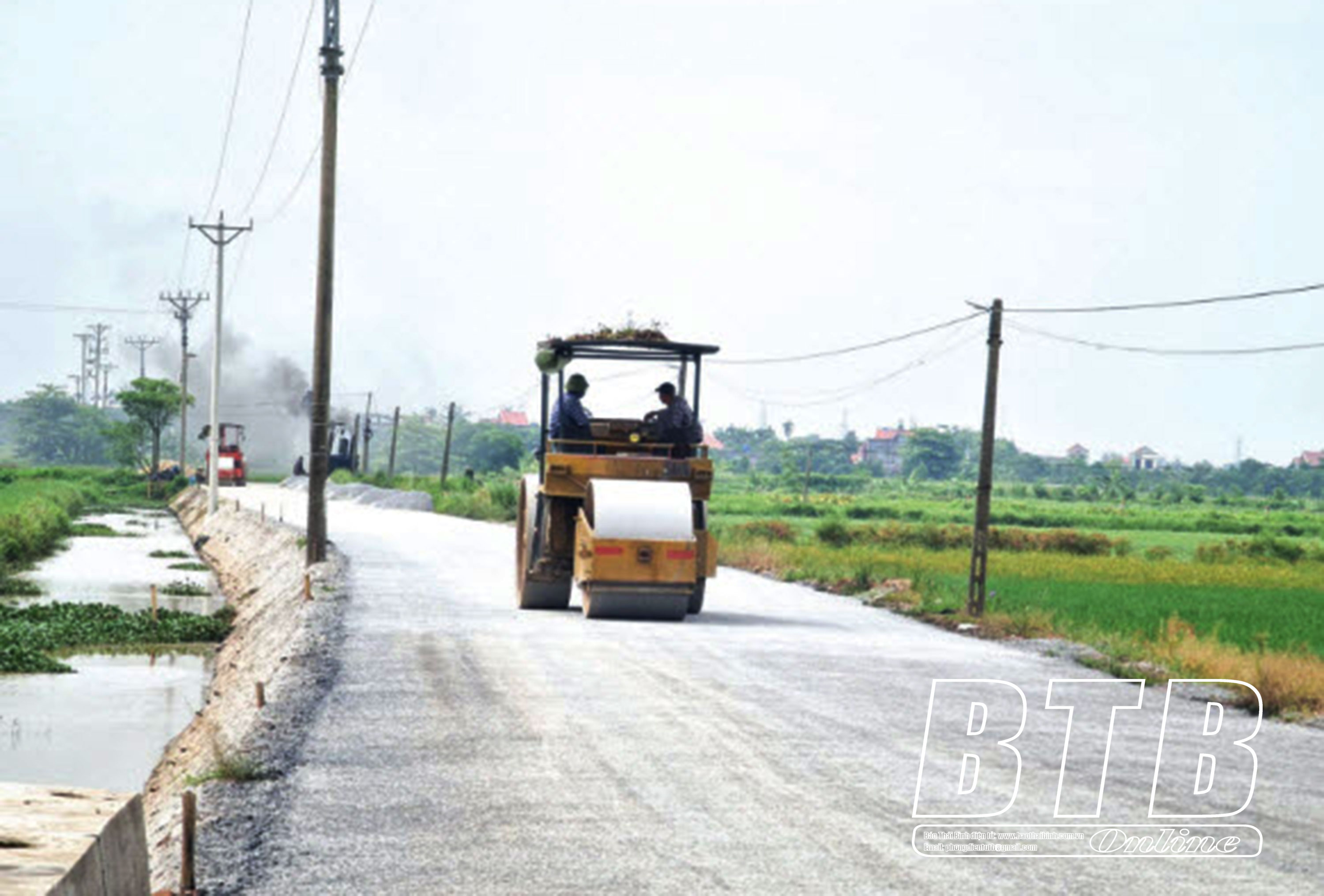 Thi công tuyến đường qua địa bàn xã Quang Lịch.