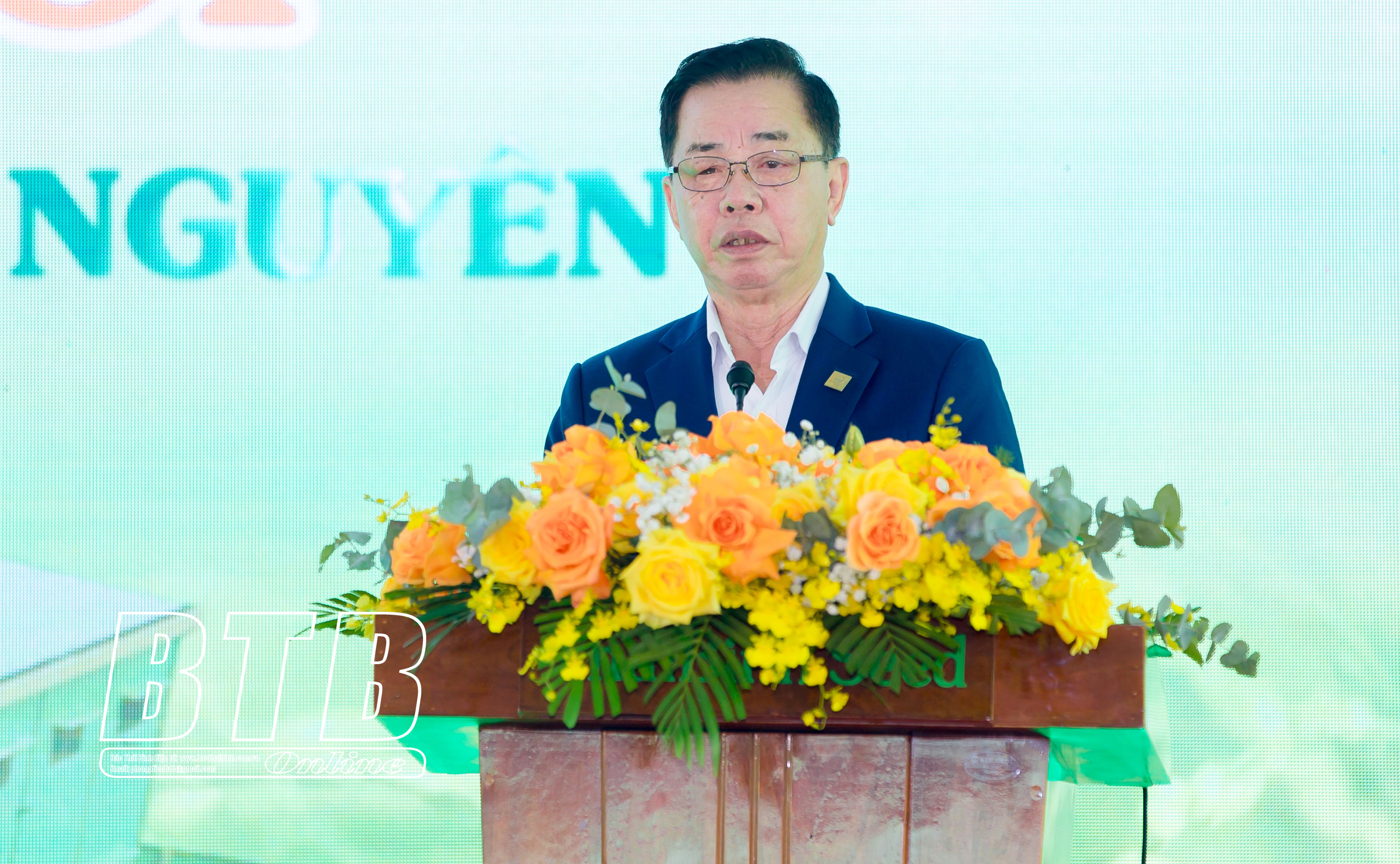Anh hùng Lao động Trần Mạnh Báo, Chủ tịch HĐQT Tập đoàn ThaiBinh Seed phát biểu tại lễ khánh thành.