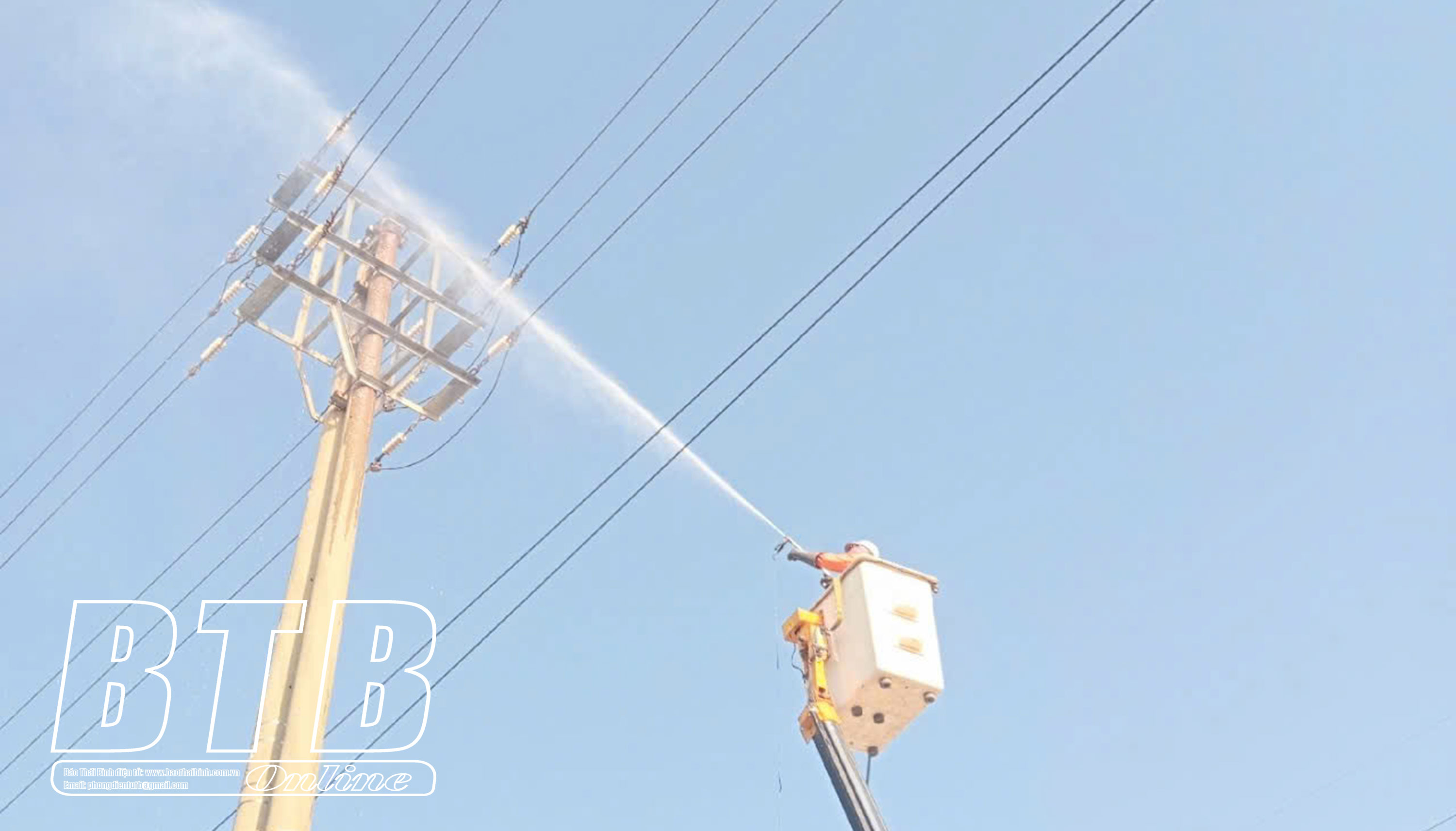 Nhân viên Điện lực Tiền Hải vệ sinh thiết bị trên lưới cao thế.