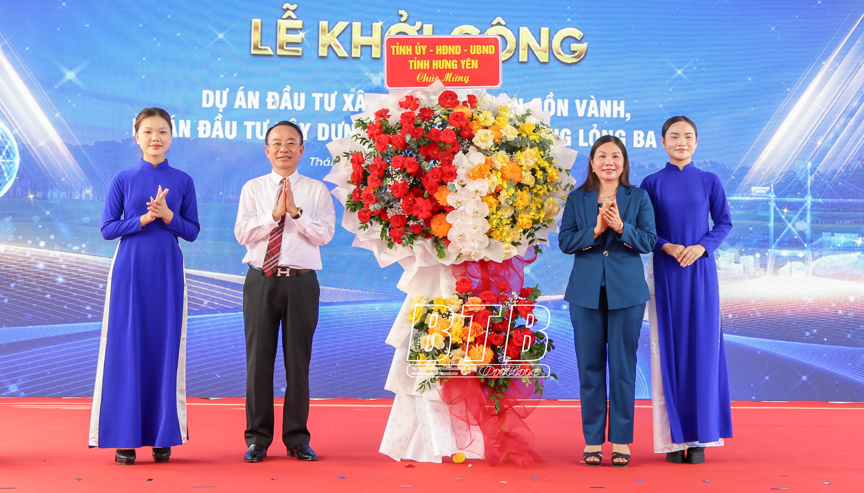 Đại diện lãnh đạo tỉnh Hưng Yên tặng hoa chúc mừng.