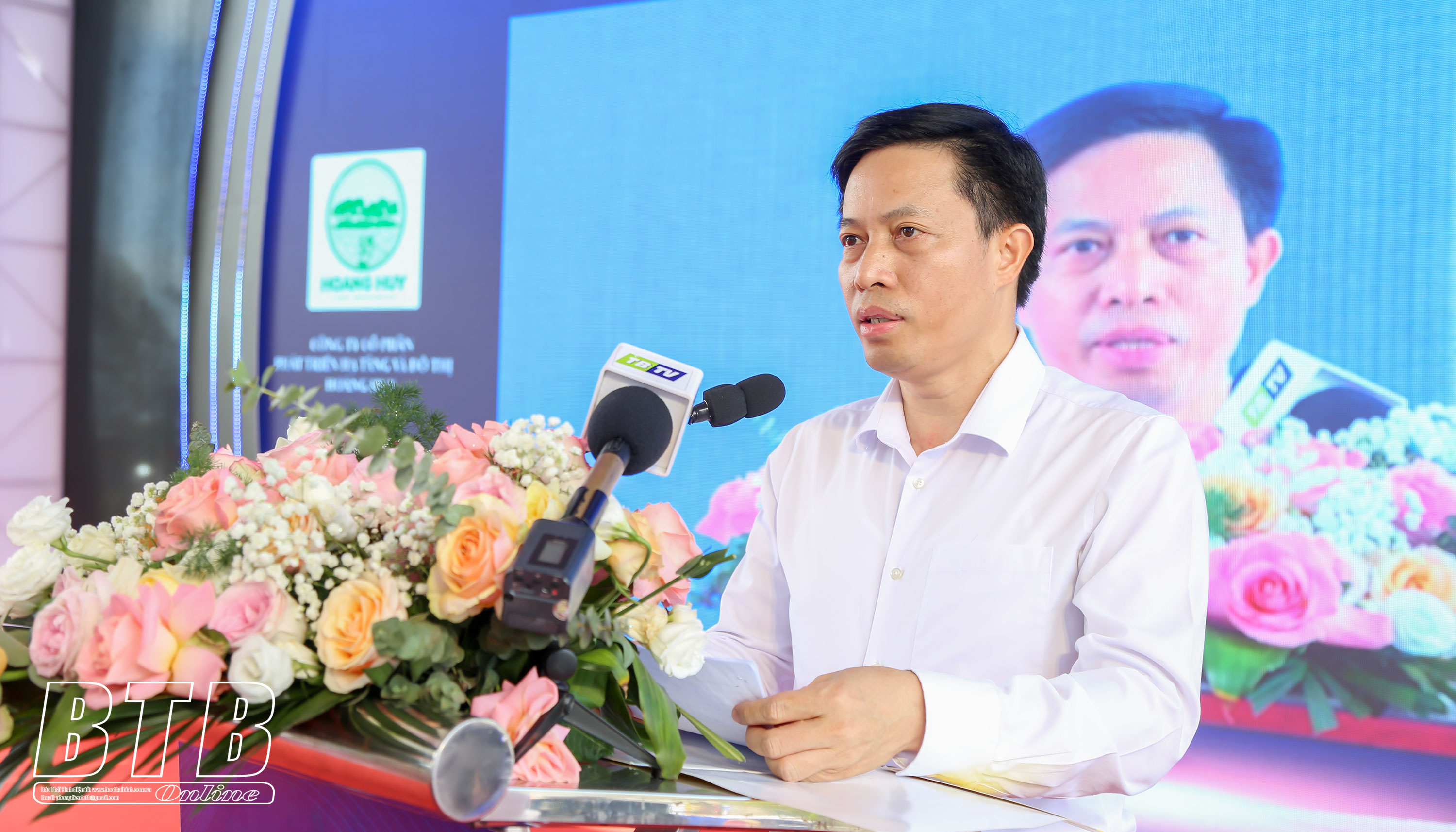 Ông Hoàng Quốc Việt, Chủ tịch HĐQT Công ty CP Phát triển hạ tầng và đô thị Hoàng Huy, đại diện chủ đầu tư phát biểu tại buổi lễ.