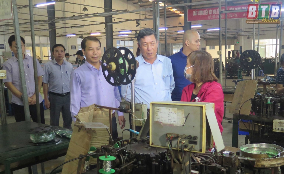 Đồng chí Phạm Văn Ca, Ủy viên Ban Thường vụ Tỉnh ủy, Phó Chủ tịch thường trực UBND tỉnh tham quan thực tế nhà xưởng và hỏi thăm đời sống công nhân tại Công ty TNHH Neo - Neon Việt Nam.