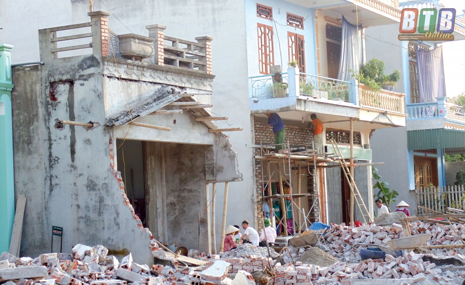Người dân xã Vũ Phúc (thành phố Thái Bình) tháo dỡ các công trình tạo điều kiện đẩy nhanh tiến độ thi công dự án.