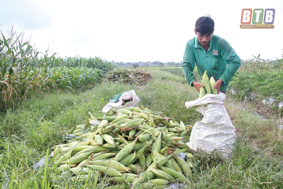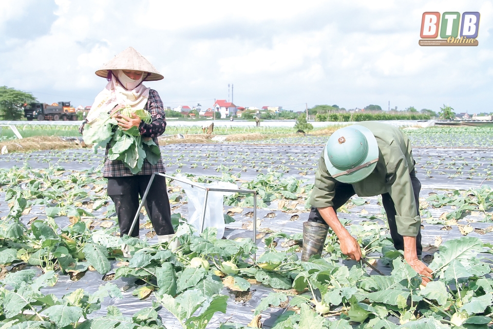 Nông dân xã Quỳnh Hải (Quỳnh Phụ) thu hoạch rau màu.