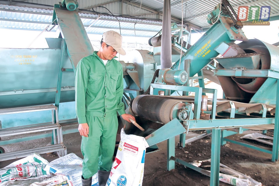 Dây chuyền chế biến phân vi sinh tại nhà máy xử lý rác thải sinh hoạt thị trấn Quỳnh Côi (Quỳnh Phụ).