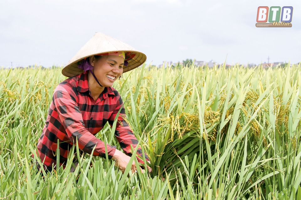 Chúng tôi tới thăm cánh đồng Đông Trung, thị trấn Thanh Nê (Kiến Xương) khi bà con nông dân nơi đây đang tập trung thu hoạch lúa. Nhìn những bông lúa uốn câu trĩu nặng, ít ai nghĩ chỉ mấy vụ trước, đây là vùng canh tác kém hiệu quả, khiến nhiều nông dân bỏ ruộng.