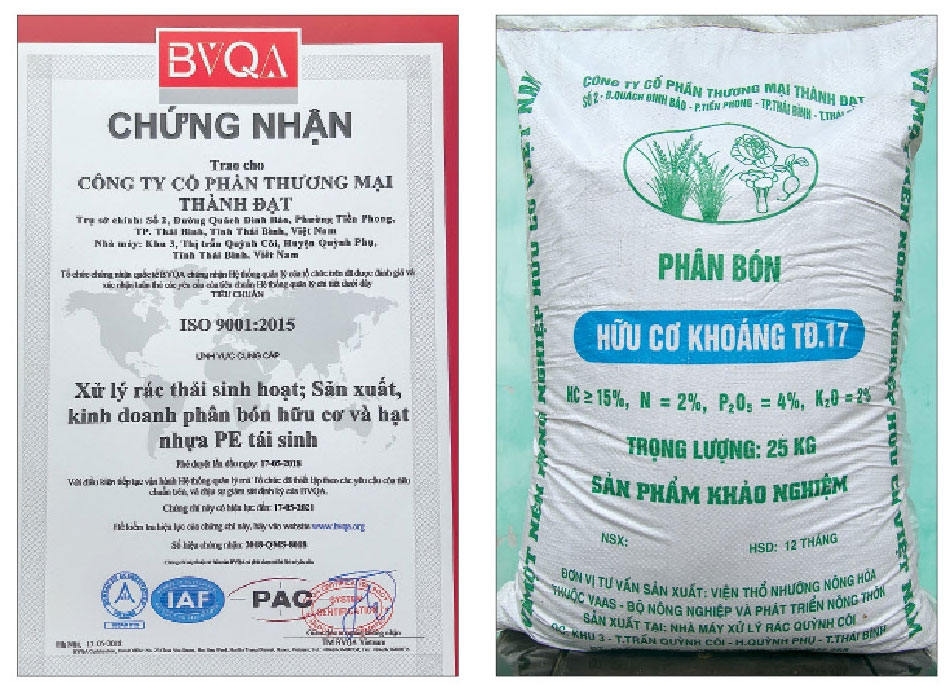 Cùng với những hiệu quả tích cực từ hoạt động của nhà máy xử lý rác sinh hoạt, Công ty Cổ phần Thương mại Thành Đạt đã tận dụng phụ phẩm trong quá trình xử lý rác, nghiên cứu dây chuyền chế tạo phân hữu cơ. Qua quá trình khảo nghiệm trong canh tác lúa và rau màu tại một số địa phương, sản phẩm phân bón hữu cơ TĐ16 và hữu cơ khoáng TĐ17 đã thu được những kết quả tích cực.