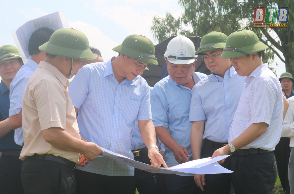 Đồng chí Đặng Trọng Thăng, Phó Bí thư Tỉnh ủy, Chủ tịch UBND tỉnh khảo sát quy hoạch dự án trang trại chăn nuôi bò của Công ty TNHH Xây dựng và Kinh doanh Tuấn Anh, xã Quỳnh Giao, huyện Quỳnh Phụ.