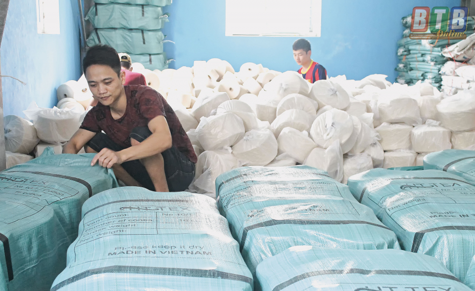 Hoạt động sản xuất tại Công ty Cổ phần Thương mại bông sợi Hoàng Tuấn.