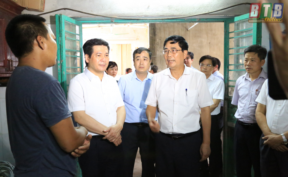 Cũng trong buổi sáng, Đoàn đã đến khảo sát tại một cơ sở giết mổ lợn tại xã Hòa Bình (Vũ Thư).