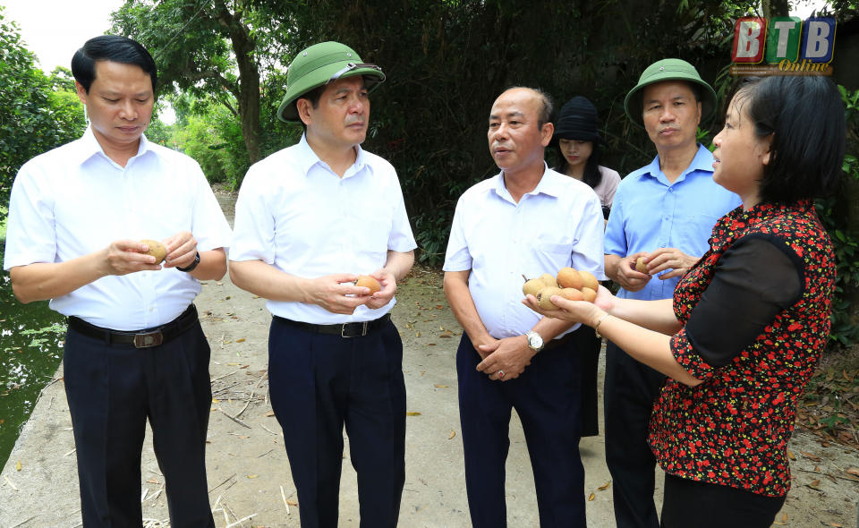 Tiếp đó, đồng chí Bí thư Tỉnh ủy, Chủ tịch HĐND tỉnh đến thăm vùng trồng cây hồng xiêm cho giá trị kinh tế cao tại xã Lô Giang, huyện Đông Hưng.