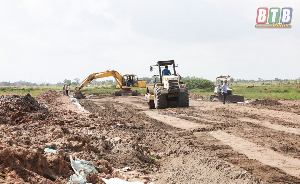 Dự án tuyến đường bộ ven biển đoạn qua xã Thụy Tân (Thái Thụy) đang được thi công. Ảnh: Thành Tâm