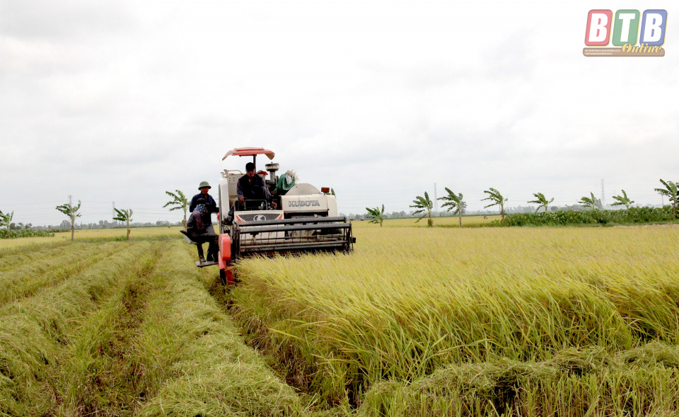 Thu hoạch lúa mùa tại Thái Thụy.