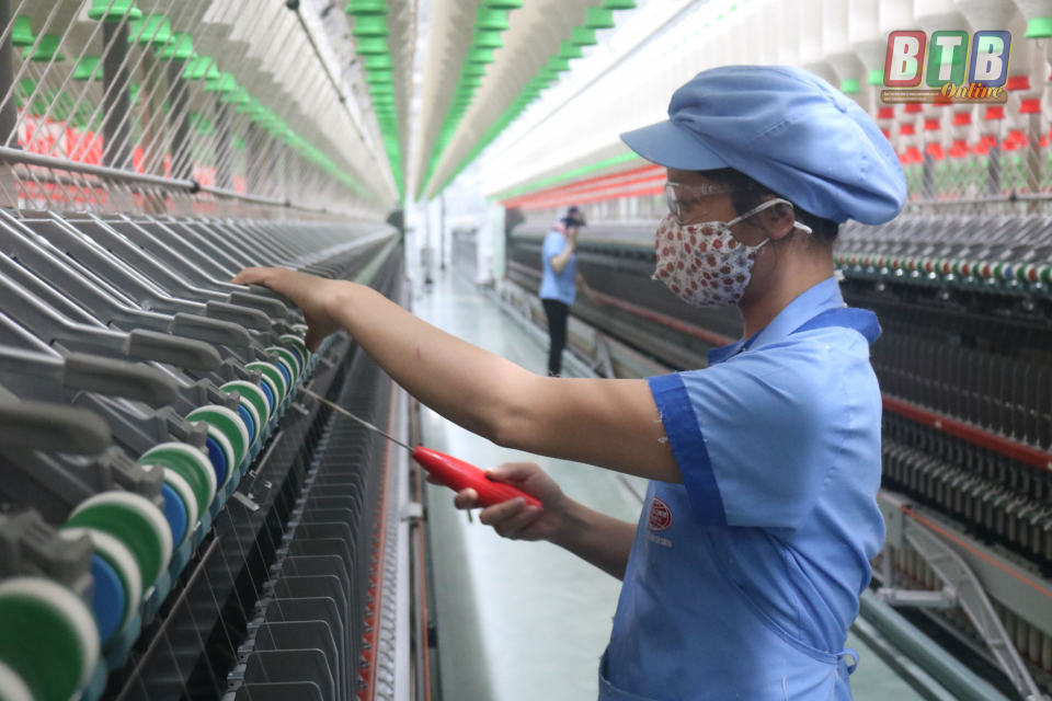 Công nhân Công ty Sợi dệt Hương Sen Comfor, Cụm công nghiệp Đông Hải (Quỳnh Phụ) vận hành sản xuất.