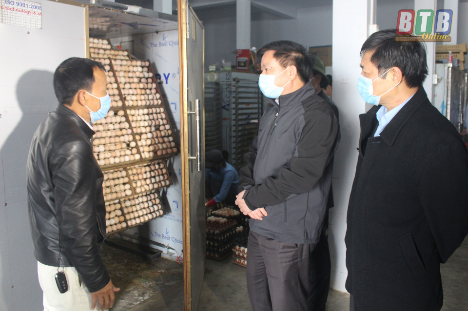 Đoàn đã đến kiểm tra gia trại chăn nuôi của gia đình ông Phan Thế Quân (thôn Đoài, xã Thụy Ninh) với quy mô 4.000 con vịt đẻ và cơ sở sản xuất giống gia cầm Thoa Tuyết của gia đình ông Nguyễn Văn Thoa (thôn Cao Trại, xã Thụy Việt) với quy mô cung cấp cho thị trường khoảng 200.000 con giống gia cầm các loại mỗi tháng.