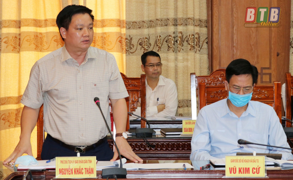 Đồng chí Nguyễn Khắc Thận, Tỉnh ủy viên, Phó Chủ tịch UBND tỉnh phát biểu ý kiến góp ý với đơn vị tư vấn tại cuộc họp.