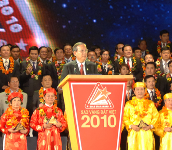 Lễ trao giải thưởng Sao Vàng Đất Việt 2010 do Trung ương Hội liên hiệp thanh niên Việt Nam và Trung ương Hội Doanh nhân trẻ Việt Nam vừa tổ chức tại Thành phố Hồ Chí Minh.