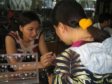 Chị Hồng tư vấn cho khách tại cửa hàng