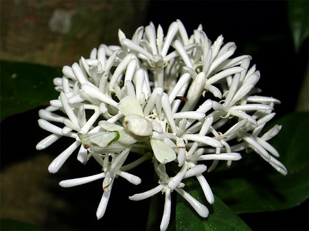 Khi ẩn mình trên những đóa hoa màu trắng, bọ ngựa trắng như trở nên vô hình trước cặp mắt của con mồi, cũng như những kẻ thù của mình. Điều này giúp chúng không tốn quá nhiều công sức để có được những bữa ăn no nên khi các loài côn trùng như ong, bướm đến hút mật hoa mà không hề phát hiện ra có một bông hoa “sát thủ” nằm lẫn trong chùm hoa trắng muốt.