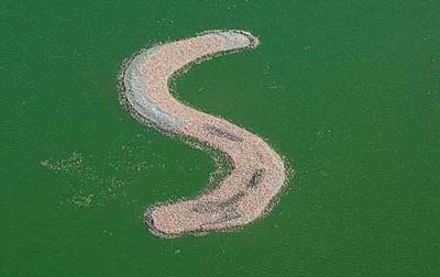 Kamfers Dam, Nam Phi: Hòn đảo này được xây dựng để biến thành nơi cư trú của loài chim hồng hạc từ năm 2006. Kamfers Dam có thể là nơi ở của 50.000 con chim. Một điểm rất đặc biệt khác, đó là nhìn từ trên cao, hòn đảo mang hình chữ S.