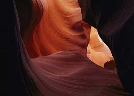 Ánh sáng mặt trời len xuống một hang đá ở hẻm núi Antelope, bang Arizona, Mỹ.