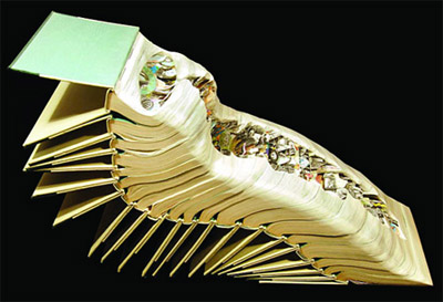 Còn dưới đôi tay của nghệ nhân Guy Laramee, những cuốn sách dày cộp đã biến hóa thành những bức tranh phong cảnh hữu tình gồm núi non trùng điệp, thác nước, những hòn đảo, những hang động khuất lấp và cả những thửa ruộng bậc thang. Laramee đã dành trên ba mươi năm tham gia vào nhiều lĩnh vực nghệ thuật như soạn nhạc, viết kịch, vẽ nhưng ông lại thành công nhất trong điêu khắc sách. Hai tác phẩm gây ấn tượng sâu sắc của ông là The Great Wall và Biblios.