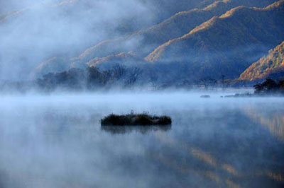 Những hồ nước trong veo, phẳng lặng như gương thấp thoáng trong màn sương huyền ảo hay vài chiếc thuyền nhỏ nằm im lìm trên bến vắng… tạo thành bức tranh mùa thu bình yên và rất đỗi thơ mộng.