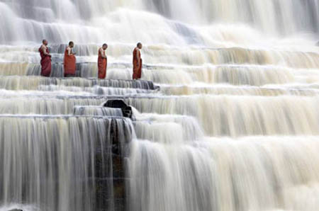 Bức ảnh các nhà sư trên thác Pongour tại tỉnh Lâm Đồng được Huffingtonpost bình chọn là một trong những bức ảnh đẹp nhất năm. Thác đổ từ độ cao 40m qua hệ thống đá bậc thang 7 tầng. Pongour là thác nước duy nhất ở Việt Nam có lễ hội. Hàng năm, cứ đếm rằm tháng 1 là nam thanh, nữ tú ở khắp nơi lại đổ về đây dự hội.