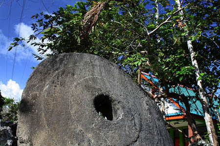 Đồng xu khổng lồ làm từ đá Rai của người dân đảo Yap, thuộc Micronesia, Thái Bình Dương.