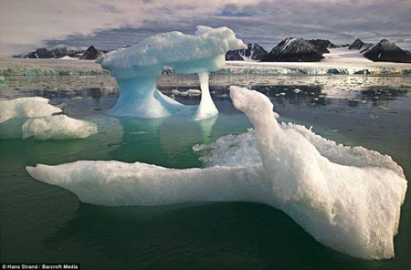 Những tảng băng ở Bắc Cực tan chảy tạo thành khối hình độc đáo, vô định.