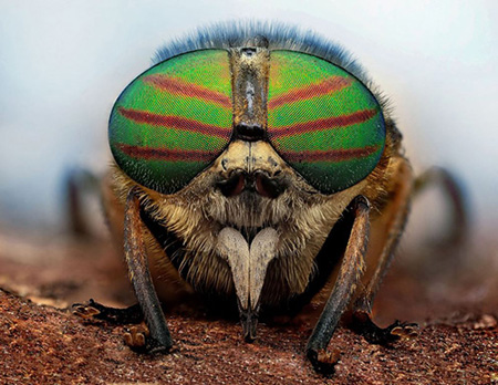 Ireneusz (29 tuổi), người Ba Lan chia sẻ: "Tôi yêu ảnh macro và dành nhiều thời gian cho chúng. Màu sắc và hình dạng khác nhau của mắt côn trùng khiến tôi bị mê hoặc". Ảnh trên: đầu của một con ong bắp cầy Kanye.