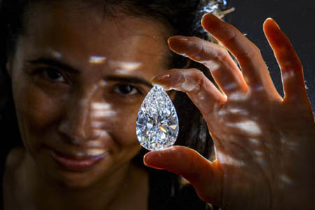 Viên kim cương hoàn hảo loại IIA, trong suốt, hình quả lê trị giá 26,7 triệu USD.