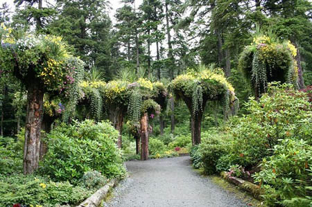 Cây lộn ngược được gọi là “Những tháp hoa” là sự kết hợp giữa loài vân sam Sitka bản địa và cây độc cần đến từ phương tây. Steve thu lượm những gốc cây bị chặt thành khúc khi chúng bị bật gốc trong vụ sạt lở đất vào năm 1984. Ông lật chúng lên trồng lại, biến chúng thành những chậu hoa tự nhiên. Ngọn cây được chôn xuống đất một vài mét, trong khi gốc rễ trở thành một cái lẵng hoa để các loài hoa như thu hải đường, vân anh, dã yên thảo mọc lên và đua nhau khoe sắc.