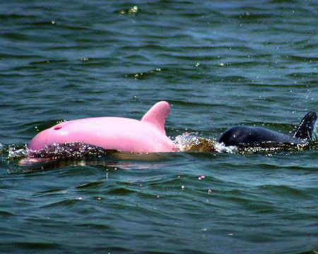 Cá heo hồng: Năm 2007, một thuyền trưởng người Louisiana (Mỹ) phát hiện ra một con cá voi màu hồng bơi giữa đàn ở hồ Calcasieu, vịnh Mexico. Con cá heo này hồng từ mắt đến da nên được đặt tên là Pinky. Giải thích cho hiện tượng đặc biệt này, nhà sinh vật học Regina Asmutis-Silvia, đang nghiên cứu tại trung tâm bảo tồn cá heo và cá voi có tên Whale and Dolphin Conservation Society nói rằng đây là hiện tượng bạch tạng do đột biến gen gây ra. Chuyên gia Regina Asmutis-Silvia cũng nói thêm rằng, hiện tượng bạch tạng xảy ra ở loài cá heo là cực kỳ hiếm thấy.
