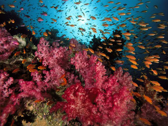 Một đàn cá basslets màu cam cũng với thức ăn chủ yếu là sinh vật phù du từ những rặng san hô mềm. Loài cá này phân bố rất nhiều ở eo biển Vatu-i-Ra, đảo Fiji. Fiji là một đảo quốc thuộc Châu Đại Dương với tổng diện tích các rặng san hô lên tới 10.400km2. Các dòng chảy thường xuyên mang tới cho khu vực đảo này một lượng lớn các sinh vật phù du. Với nguồn thức ăn dồi dào như thế, đảo Fiji nổi tiếng với những loài cá cực đẹp.