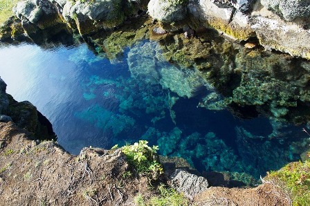 Thứ hai, nước ở đây được đánh giá là tinh khiết nhất thế giới, bởi lẽ đó là nước tan chảy từ các khối băng tuyết trên ngọn núi Hofsjokull cách đó 50km đổ về. Lượng nước chảy xuống thẩm thấu vào đất đá rồi chảy đến vườn quốc gia Thingvellir. Quá trình nước chảy từ núi Hofsjokull đến vườn Thingvellir được tinh lọc nhờ các tảng đá nham thạch với những lỗ nhỏ li ti. Nước biển trở nên tinh khiết đến mức người ta có thể uống trực tiếp và không cần qua xử lý.