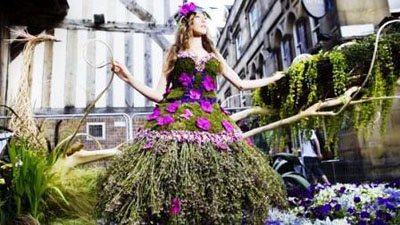 Chiếc váy độc đáo được tạo nên hoàn toàn từ hoa và lá