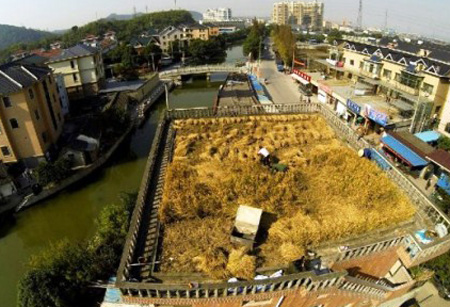 Lúa chín vàng ruộm trên mái nhà