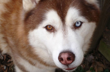 Loài chó Husky Sibir ở Siberia, Nga, tiến hóa màu mắt để thích nghi với điều kiện ánh sáng thấp ở nơi chúng sinh sống. Đôi mắt của chó husky có hình quả hạnh nhân và thường có hai đốm trắng ở phía trên, tạo cảm giác như chúng có 4 mắt. Một con chó có hai màu mắt khác nhau hoặc mỗi mắt cũng có thể có hai màu.