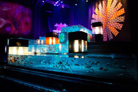 Nhằm tăng thêm độ lung linh cho các công trình, hàng loạt đèn điện đủ màu sắc sẽ được bố trí khéo léo xung quanh bể cá. Những công trình của Kimura cũng mang đậm tính biểu trưng đặc sắc trong văn hóa Nhật Bản, như nghệ thuật gấp giấy, lồng đèn, tranh phong thủy bốn mùa và cả bộ trang phục truyền thống kimono.